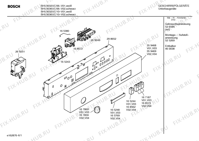 Запчасти для посудомоечной машины Bosch SHU3036UC SANI WASH; REGULAR WASH; ECONO WASH